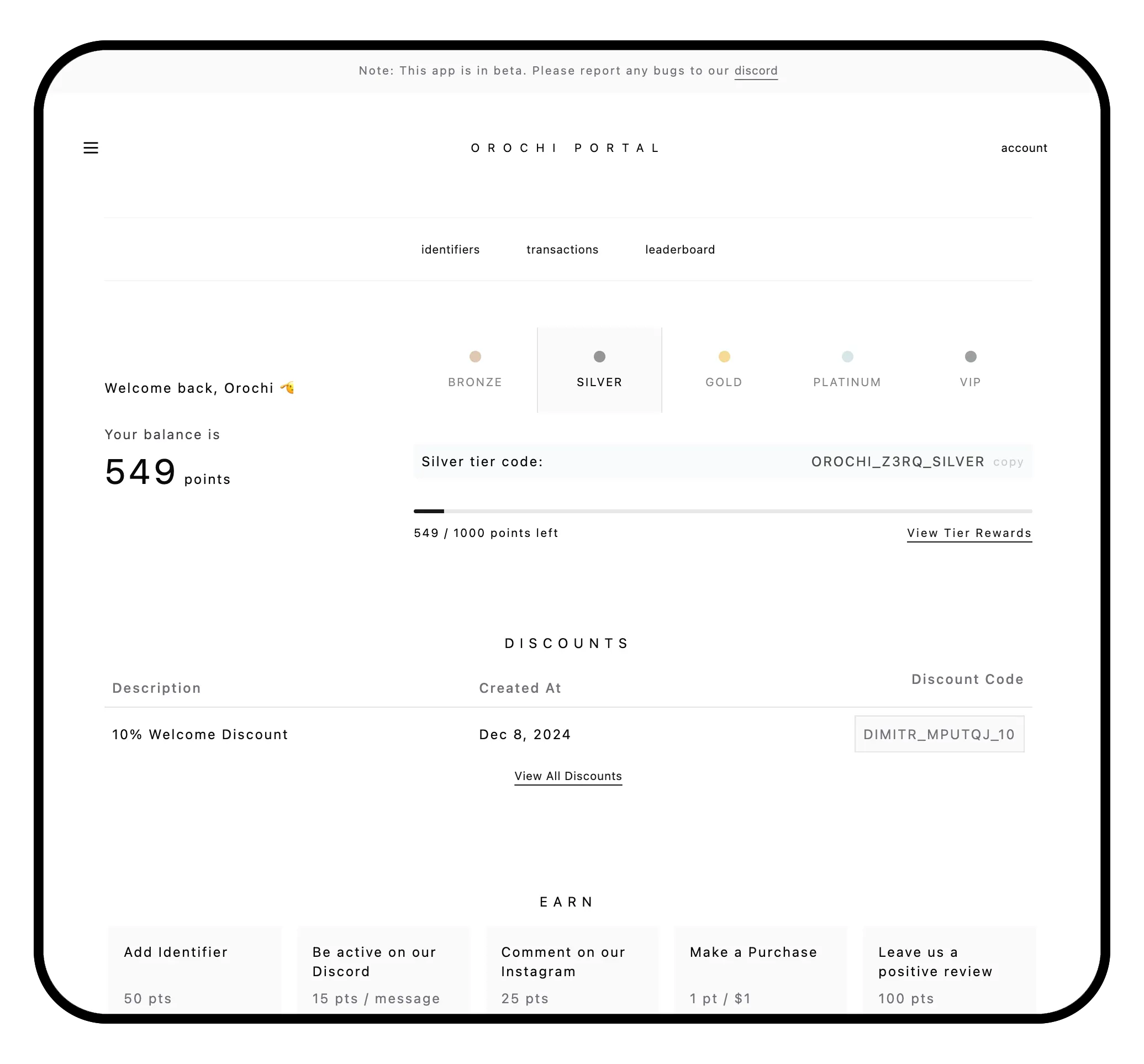 Orochi Prestige is our loyalty program where you earn points through purchases and social engagement to unlock perks, discounts, and VIP-only rewards as you level up.